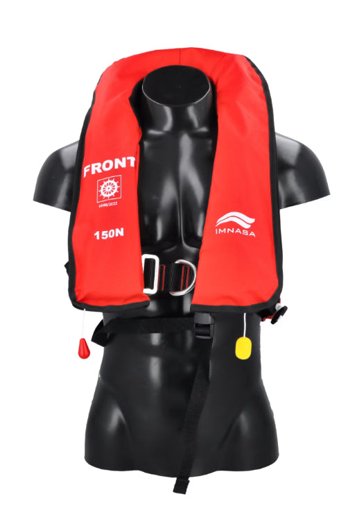 Chaleco automático de doble cámara de seguridad de 150N, con 2 mecanismos de hinchado. Dispone de accesorios y recambios disponibles.
