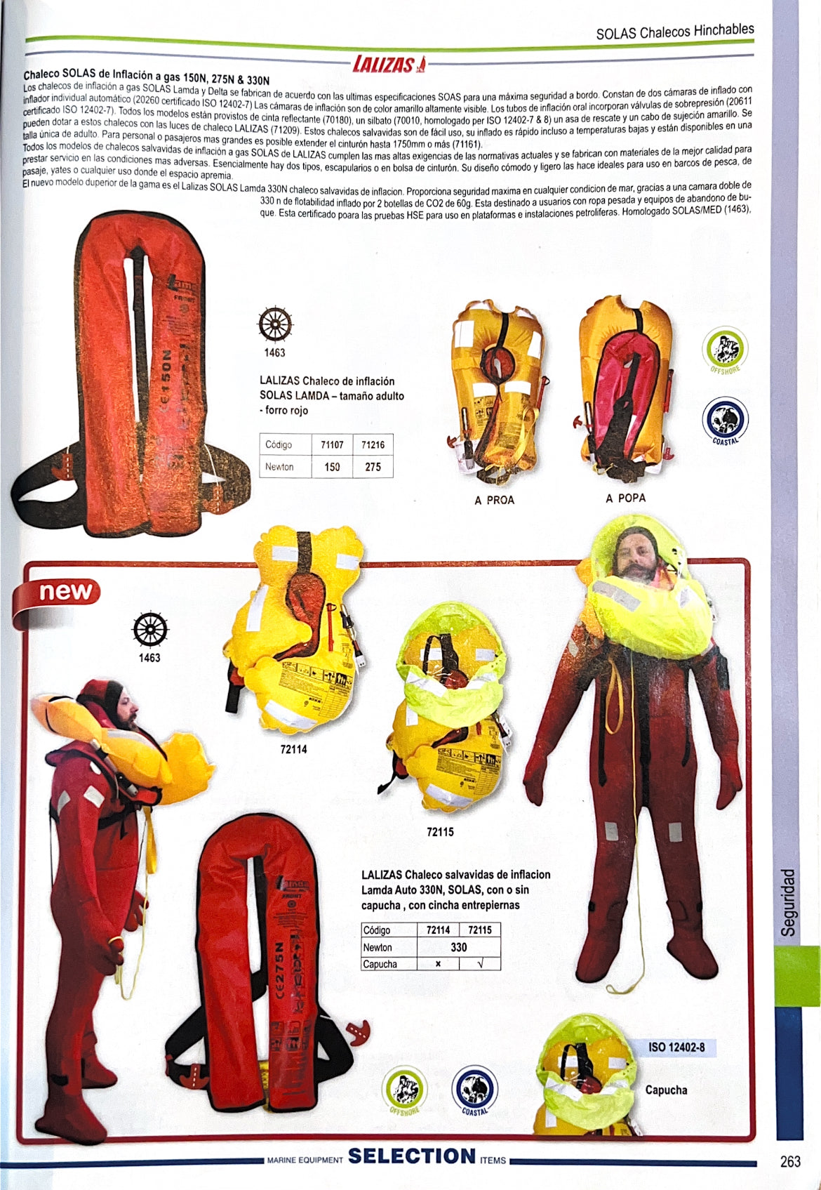 El nuevo modelo duperior de la gama es el Lalizas SOLAS Lamda 330N chaleco salvavidas de infacion. Proporciona seguridad maxima en cualquier condicion de mar, gracias a una camara doble de