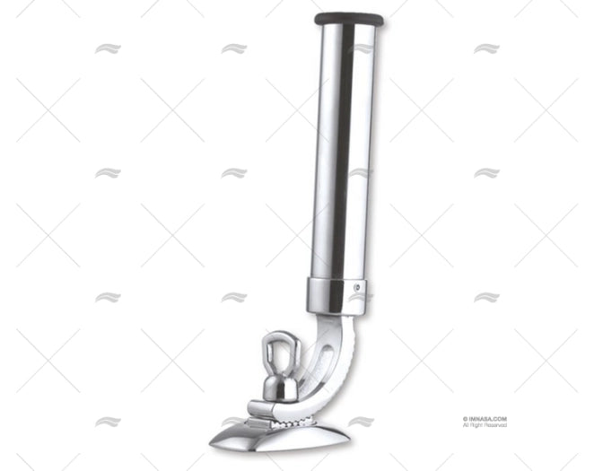 Portacañas orientable con goma de protección. Base de 90x60mm en acero inoxidable. Diámetro del tubo de 40mm. Distancia del portacañas 255mm, largo total con soporte de 355mm.